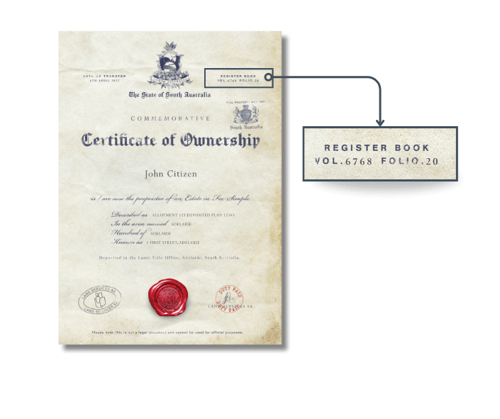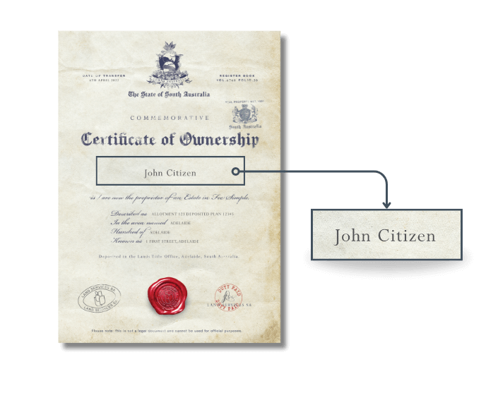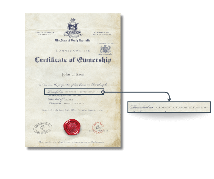 The Certificate of Ownership from Land Services SA contains the official details of your property, directly from the South Australian Property Titles Registry.